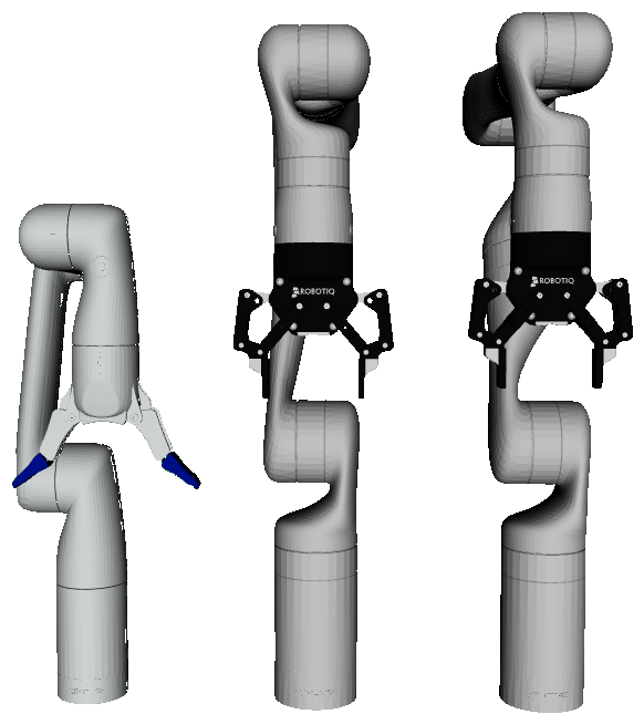 Every arm can have at most one gripper, and grippers can only be added to an existing arm. This way, depending on the arm and the gripper, the configuration system can determine whether the arm handles communication with the gripper or whether it must be done through an external connection directly to the robot computer.