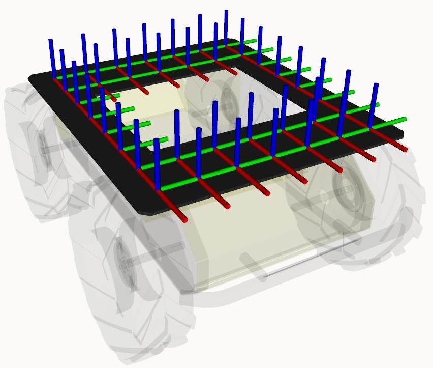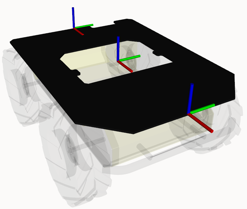 Attach accessories to the top plate mounts by setting the accessory's parent parameter to either top_plate_rear_mount, top_plate_default_mount, or top_plate_front_mount. The mounts are displayed as axes in the image above.