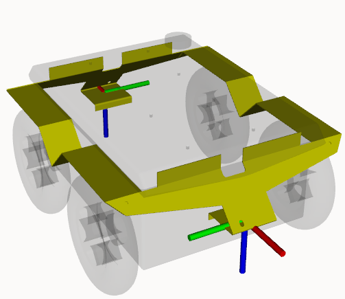 Attach accessories to the front and rear fender mounts by setting the accessory's parent parameter to front_fender_mount or rear_fender_mount. The mounts are displayed as axes in the image above.