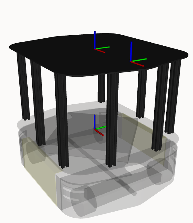 Payloads can be added to the table using the links fams_default_mount (at the center of the table) and fams_arm_mount (at the front of the table). The name of these links corresponds to the name parameter set in the robot.yaml.