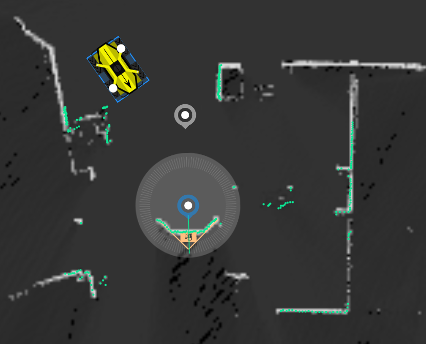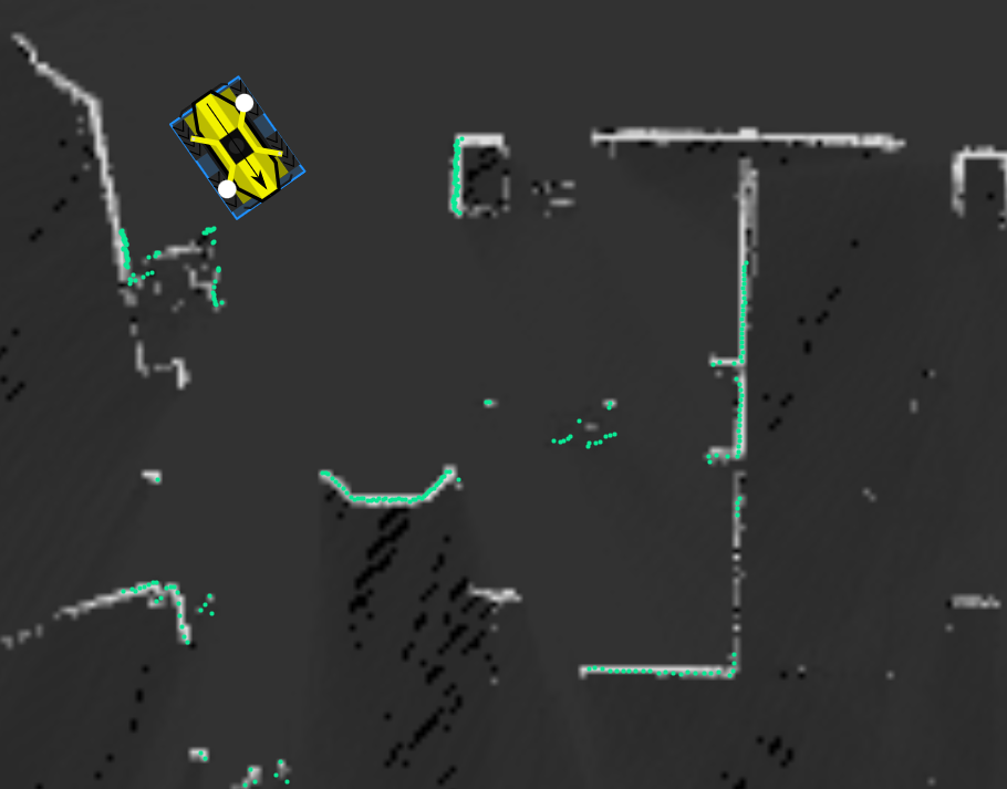 Drive the robot through the facility manually, either using the web GUI or the game controller. You will see light grey lines appear, indicating where walls and other obstacles are. You should map all locations where the robot is expected to navigate autonomously.