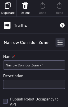 You can add further details about the zone using the configuration tools, such as those shown for the Narrow Corridor Zone in the following figure.