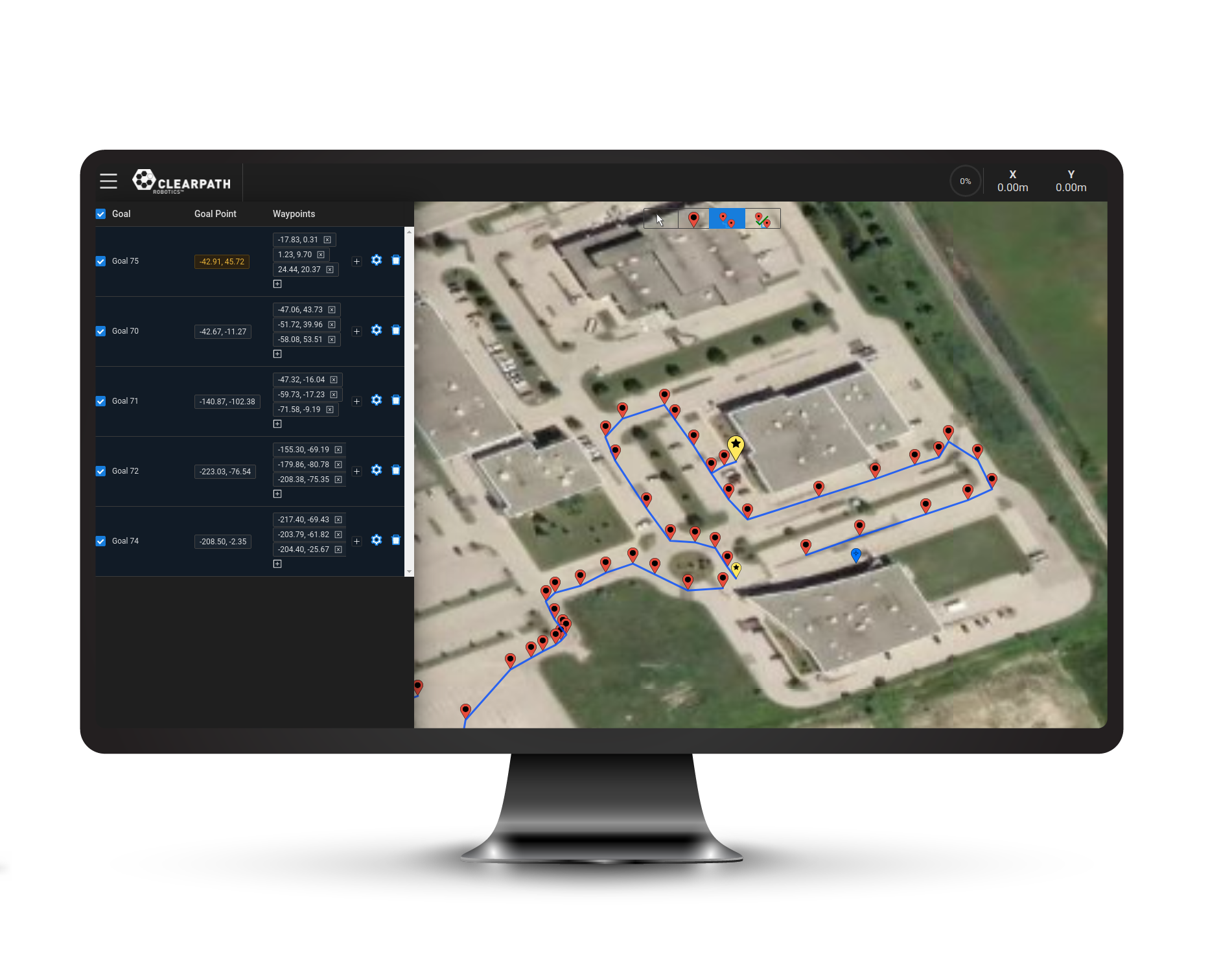 OutdoorNav is an outdoor autonomy software platform designed for vehicle developers, OEMs and robotics researchers. Compatible with Clearpath outdoor mobile platforms and third-party vehicles, OutdoorNav provides reliable, industry-leading GPS-based navigation for faster, more efficient autonomous vehicle development.