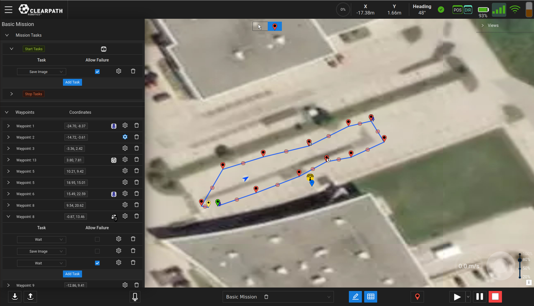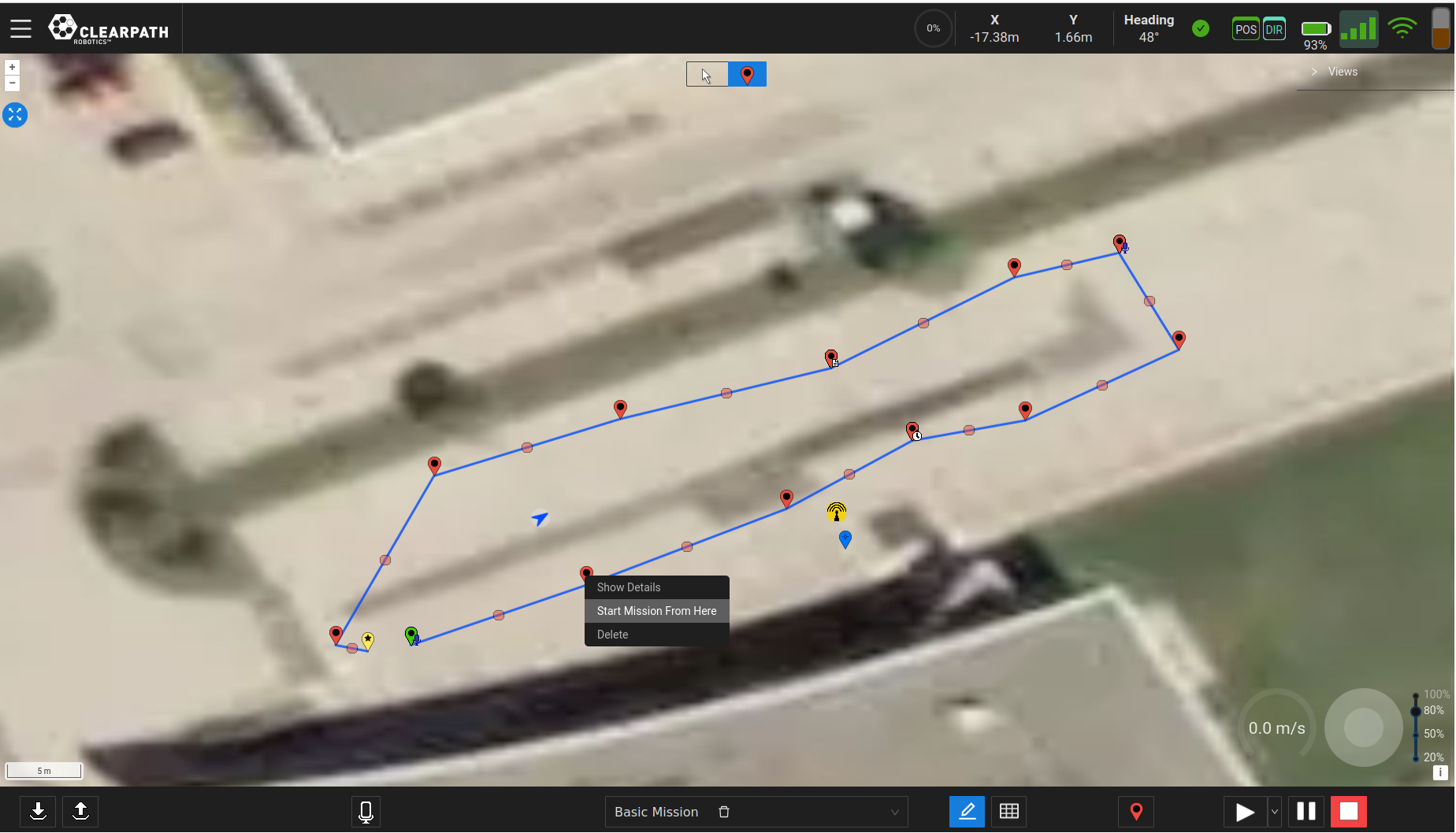 obstacles that were later moved. Another way that a user can start a Mission is by selecting a waypoint in edit mode and then clicking on