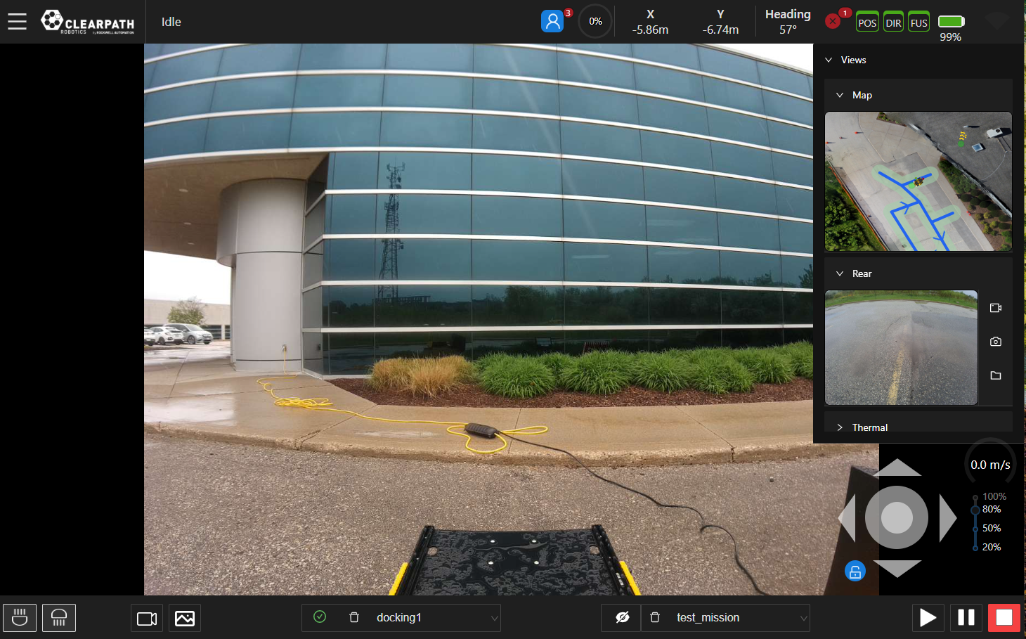 • Undock UGV: Will undock the UGV from the autocharge dock. Once completed, the UGV can be sent on autonomous missions.