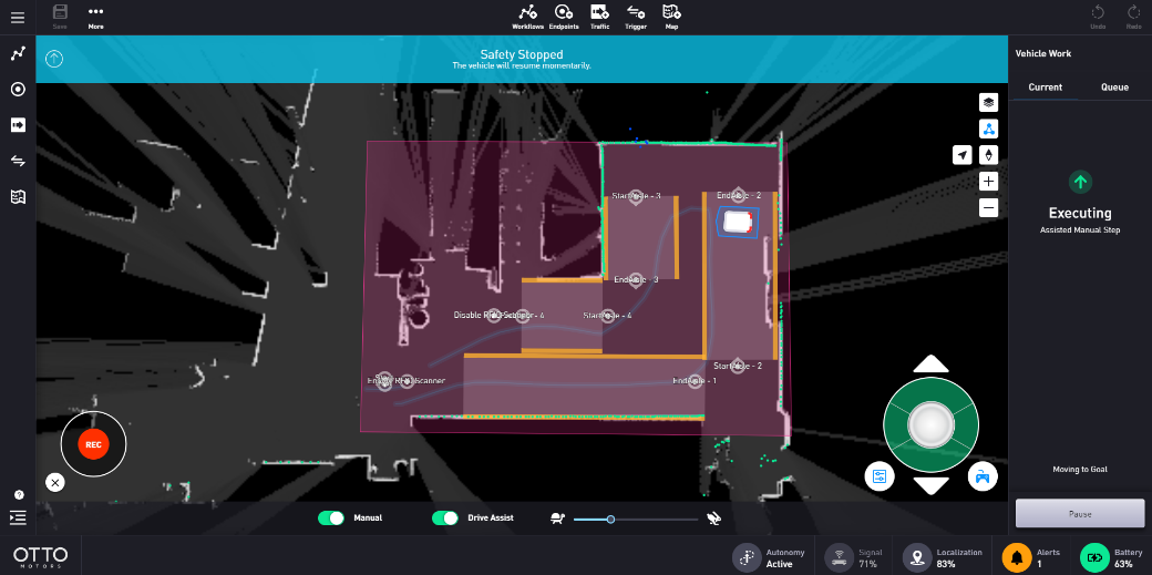 Refer to the OTTO 100 V2.5 Operation and Maintenance Manual for further safety precautions when using self-driving vehicles.