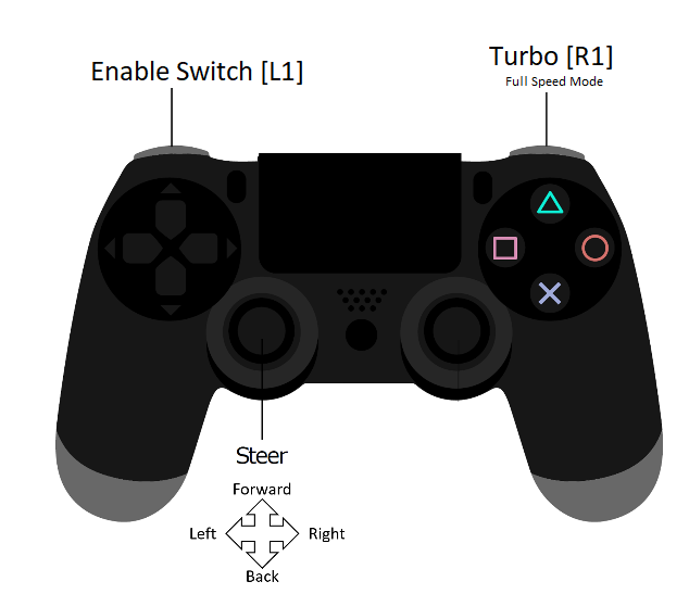 - Press the PS button on the controller to sync with the robot. Once the blue LED on the top of the controller is solid, the Robot is paired and ready to move. Hold the L1 trigger button to engage the enable switch. Push the left thumbstick in the direction you wish to move the Boxer.