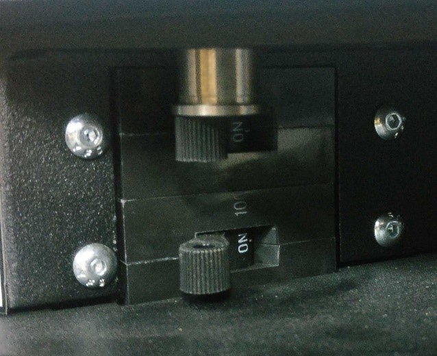 Ensure that all emergency stop buttons are released by pulling out the red buttons at the front (V2.5 only) and rear of the unit, and then pressing the blue emergency stop Reset button.