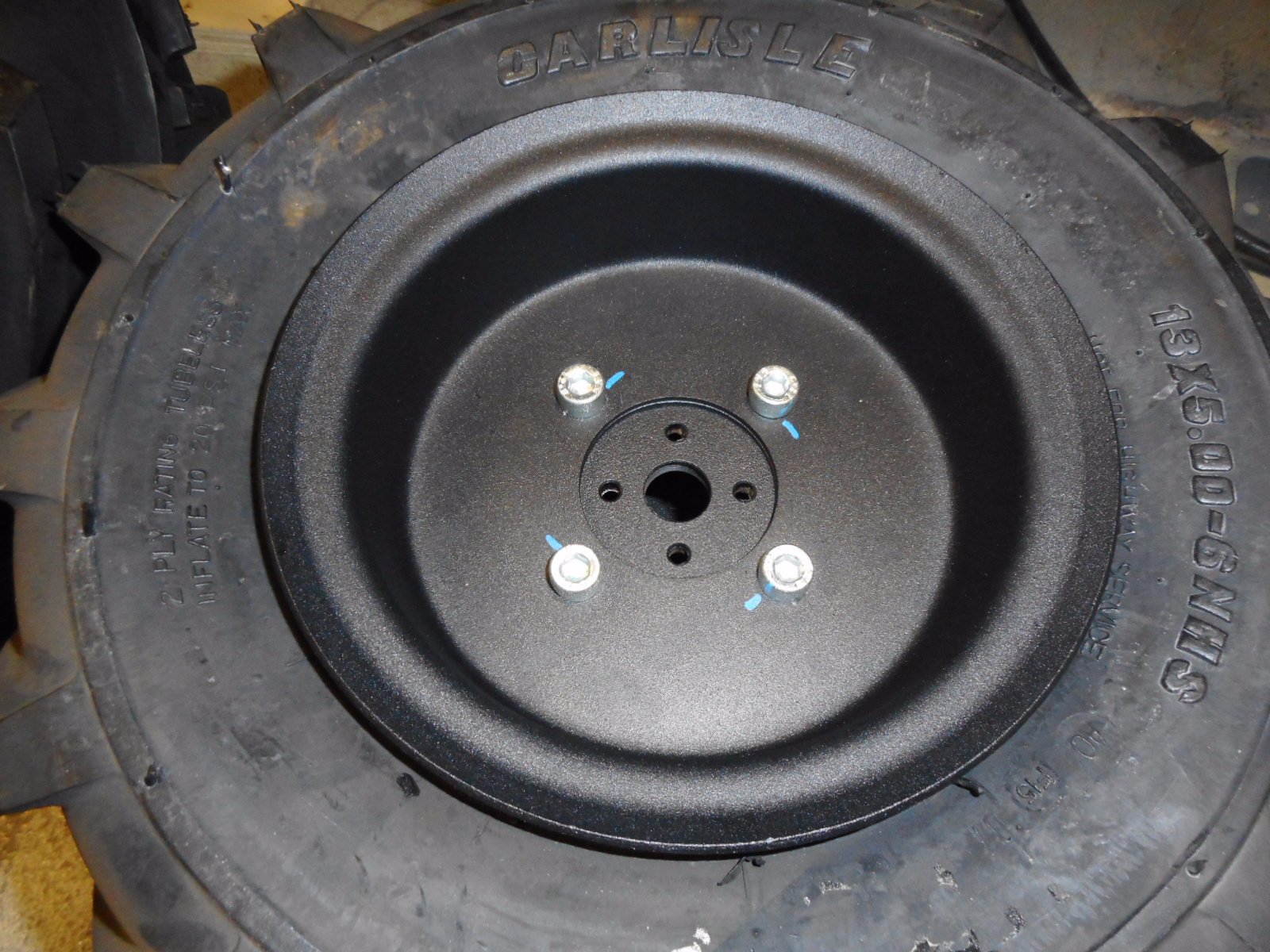 Place this on side of the tire where you want the air-fill stem to be. The picture shown is for a wheel on the left side of the Husky.