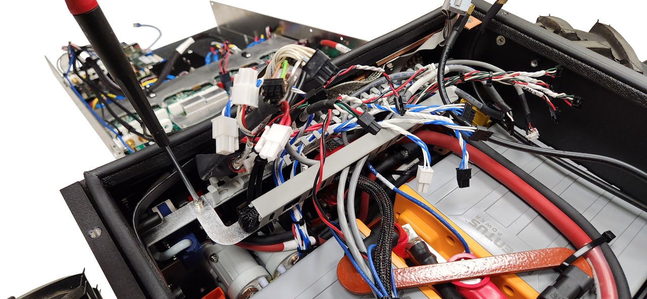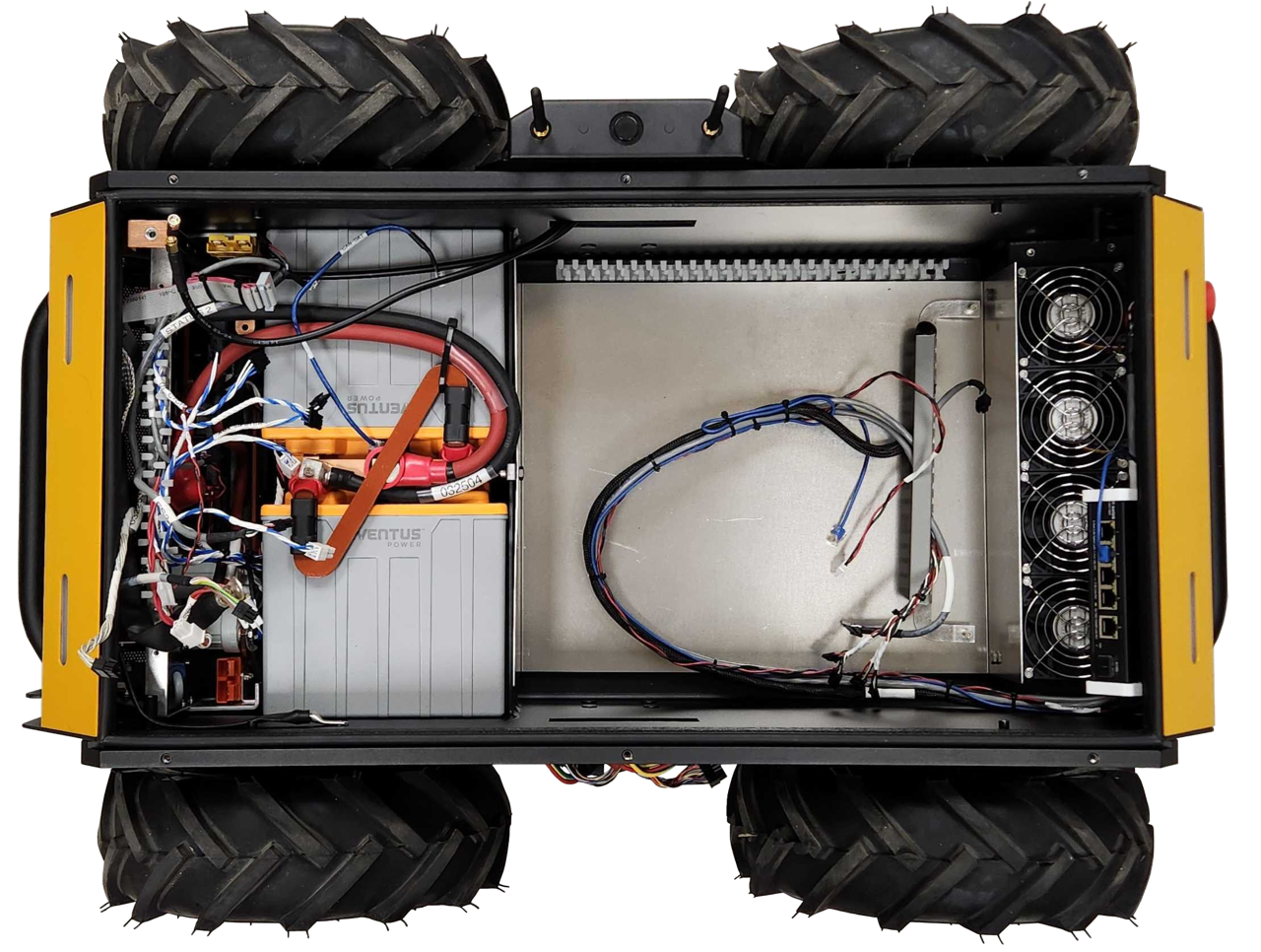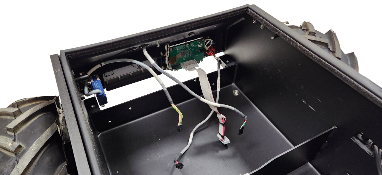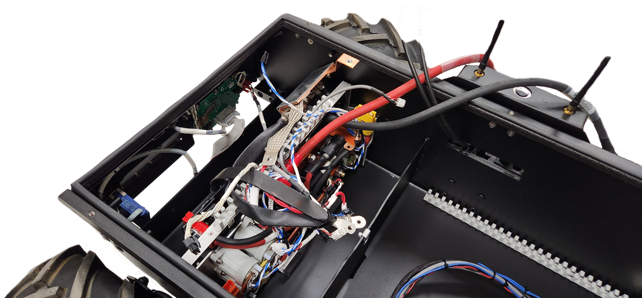 Always power off Husky A300 and set the Battery Circuit Breaker to the Off position before performing maintenance. Electrical shock or fire may occur when accessing the interior of the Husky A300, or from live voltage cables on the outside of the robot.