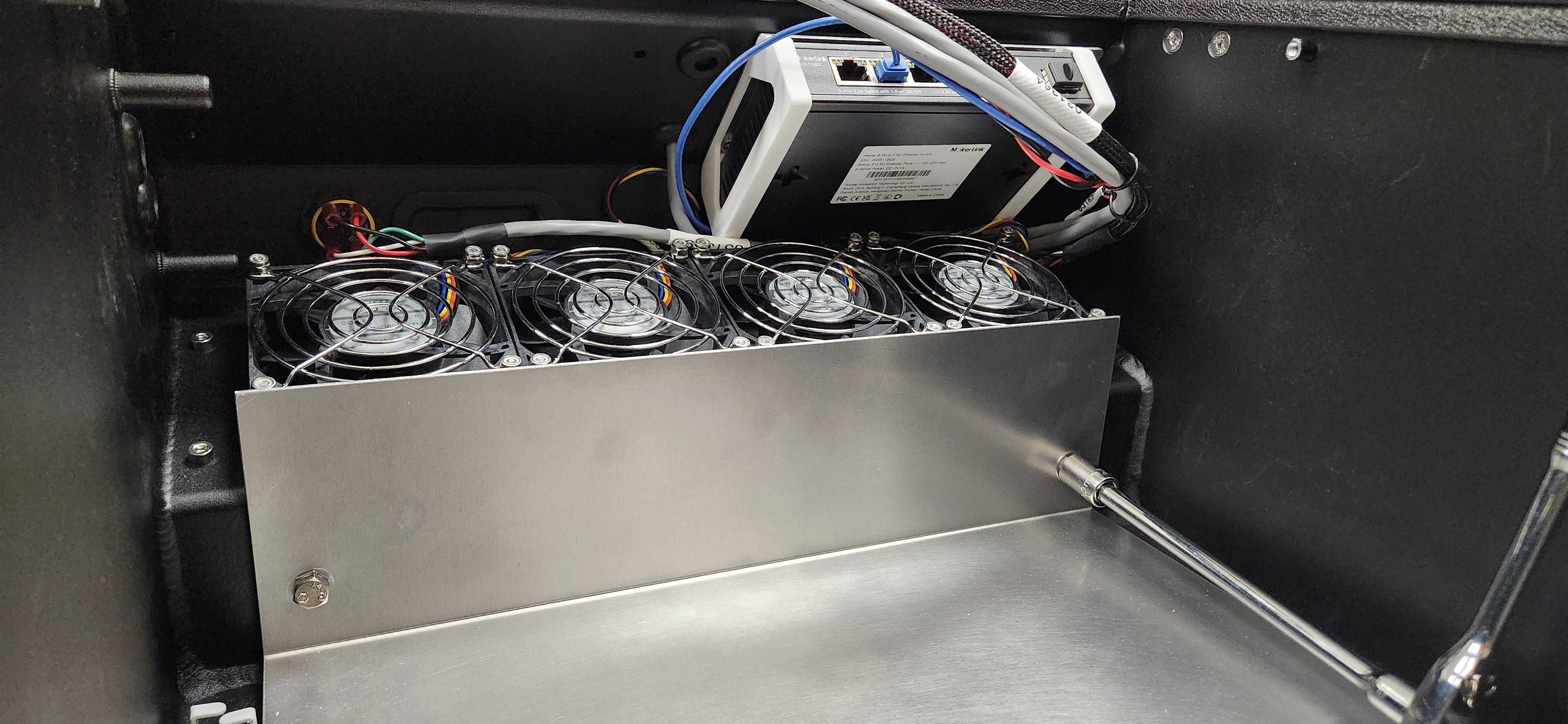 The System Interface circuit board has support for 4 additional 12 V brushless 4-wire PWM fans. Ports FAN 1, FAN 2, FAN 3, and FAN 4 are already used by the base Husky A300. Ports FAN 5, FAN 6, FAN 7, and FAN 8 are available for your fan expansions.