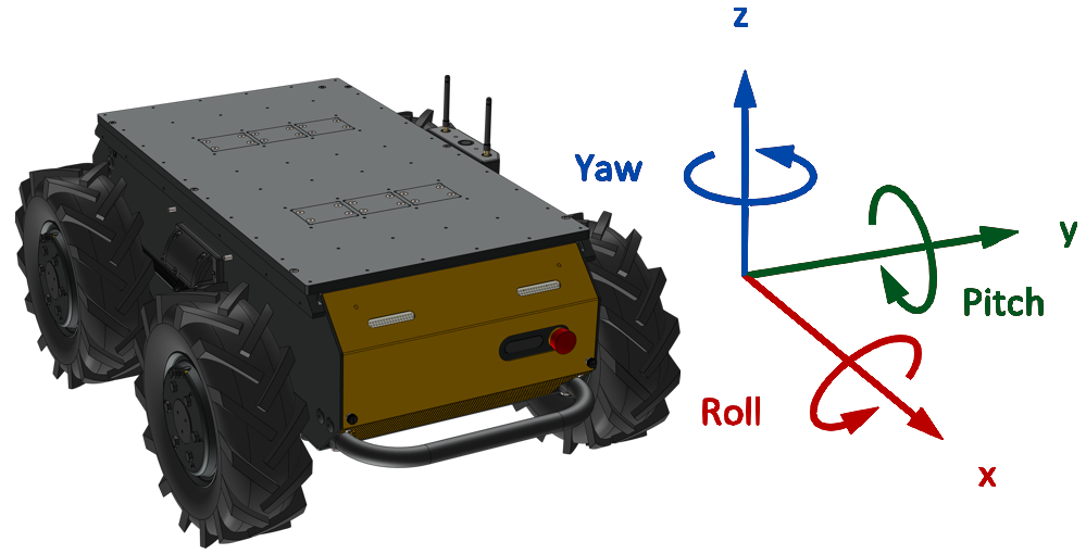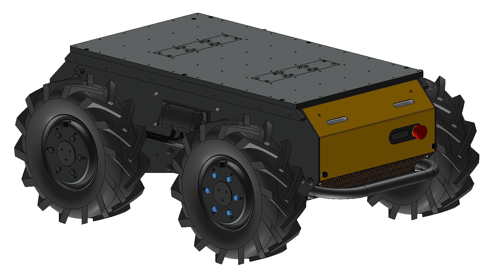 Ensure that there are no objects in the operating environment that will could move due to an impact with a free-rolling robot. The Husky A300 can roll when it is in an Emergency Stop state. The Emergency Stop state removes power from the drive motors, but does not engage a friction brake. Consider how your operating environment's slopes, the payload mass on the robot, and the velocity of the robot affect this risk.