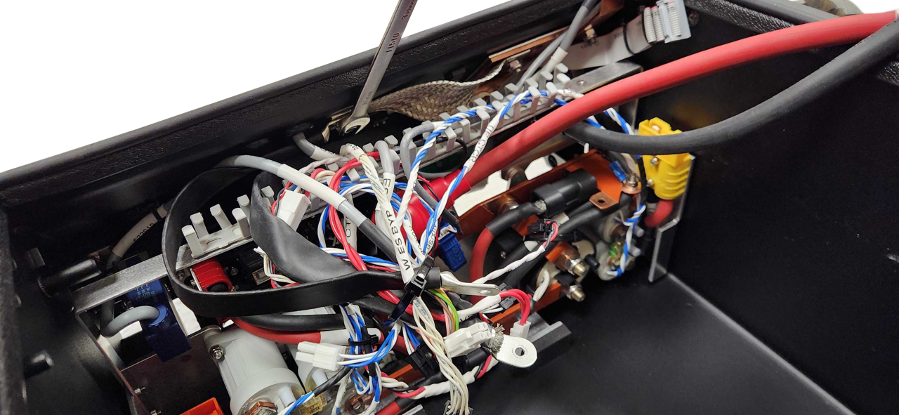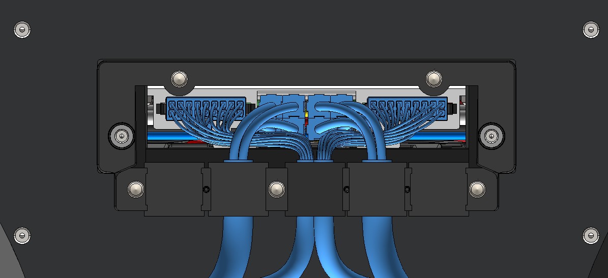 The Husky AMP and Husky Observer use 2 of these additional breakouts to connect more Emergency Stop buttons. We discard 2 of the bypass jumpers, and then connect the new Emergency Stop buttons to the System Interface circuit board.