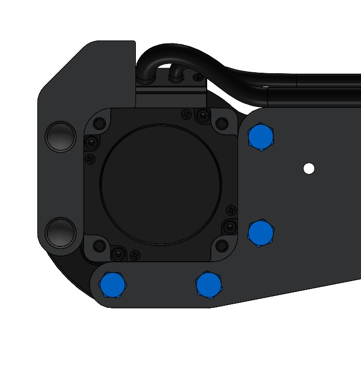 There is a grid of Ø5 mm holes on the top of the enclosure, near the front and rear edges. These holes have a pitch of 80 mm, same as Clearpath's PACS™ system. The holes are located near the enclosure's weld seams, to improve stiffness between the large component and the Husky's wheels.